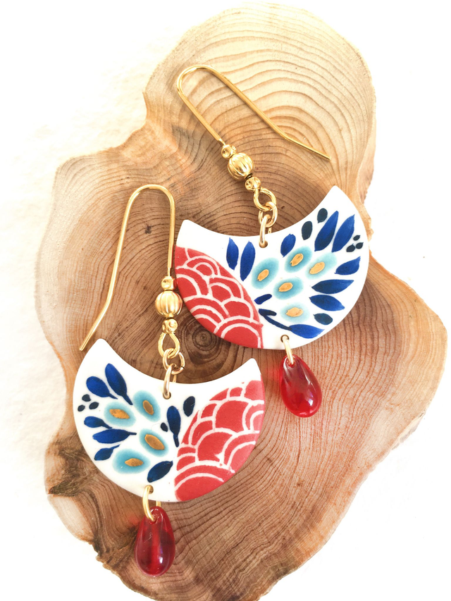 Boucles d'oreilles en porcelaine parsemé d'or