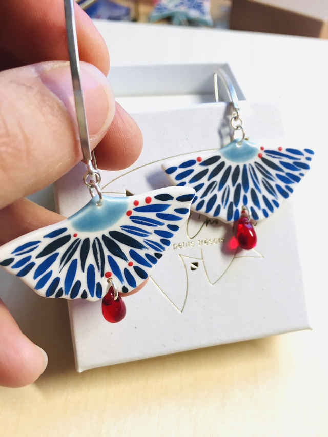 Chaque pièce est modelée à la main, ce qui implique l'éventualité de certaines irrégularités de formes et de couleurs d'un bijou à l'autre.