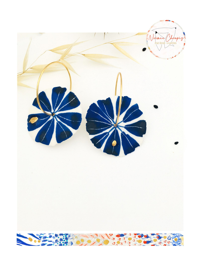 Boucles d'oreilles en porcelaine gravée à la main et parsemée d'or - Créole laiton plaqué or